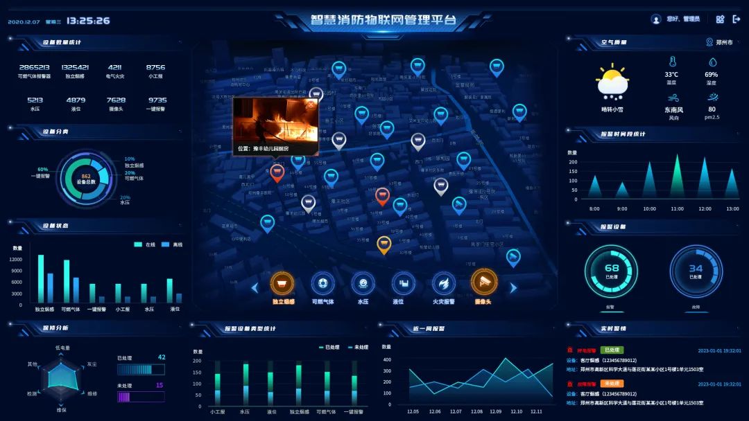 为了更好地防范和应对火灾,球友会注册大厅通过各类智慧消防报警设备联动云平台,实现多维监测、及时报警,针对重点场所可进行安消一体联动,通过云平台接入进行多层级管理,实现九小场所消防智慧化管理。