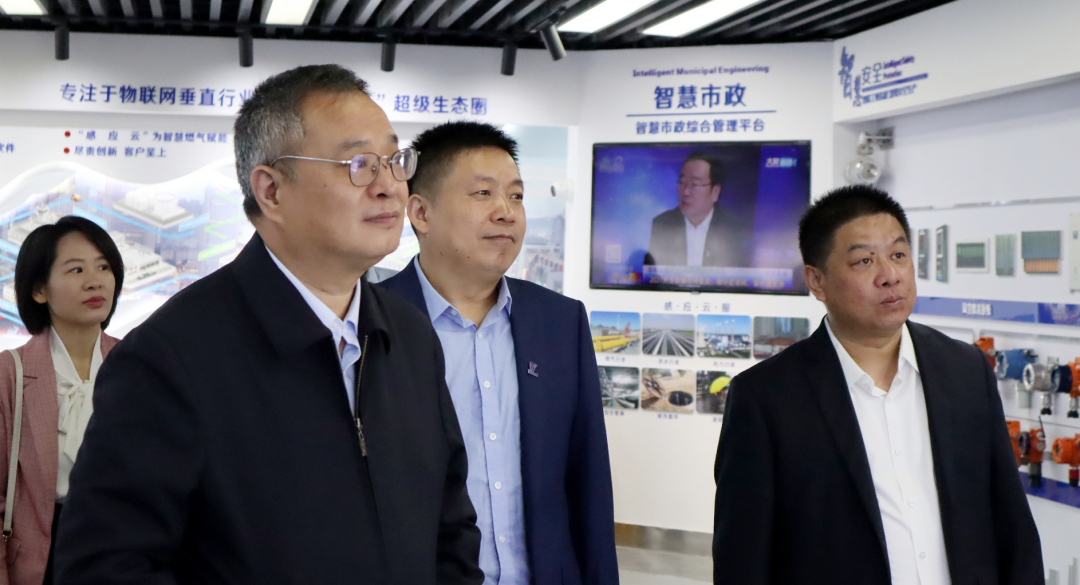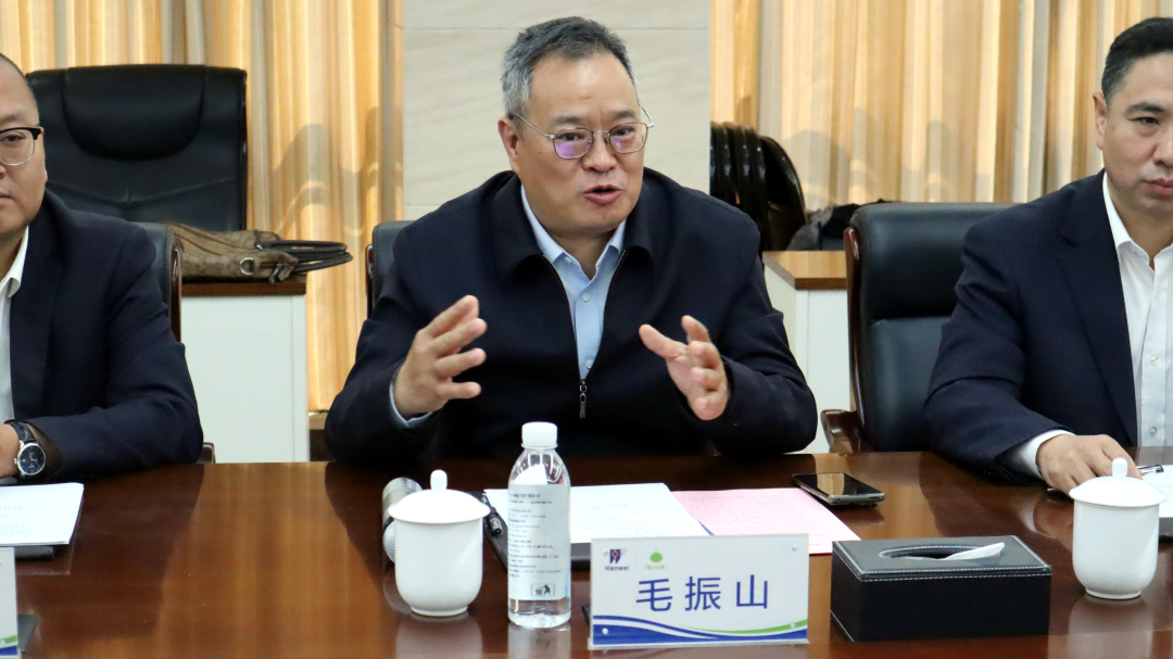双方代表参观汉威展厅 签约仪式后,在汉威科技集团相关领导的陪同下,中国广电河南网络有限公司总经理毛振山一行参观了汉威科技集团展厅,了解了汉威的发展历程及产业布局。