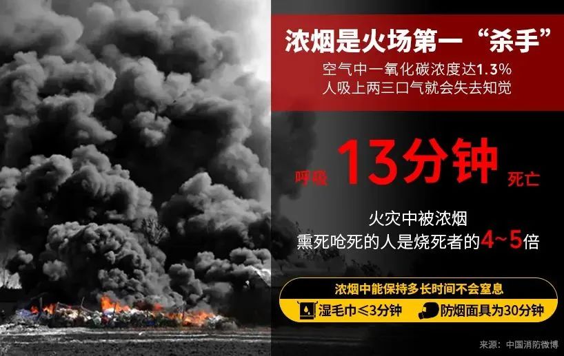 有毒浓烟、能见度低,加上高层住宅无法快速逃离,使得电缆井引起的火灾极易造成人员伤亡。 在火场中,致人死亡的最大威胁往往不是灼烧和高温,而是浓烟。相关数据表示,火灾中80%的死亡是由吸入毒性固体颗粒物与毒性气体造成。