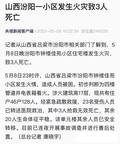 5月7日、8日,山西吕梁接连发生2起高层住宅火灾。