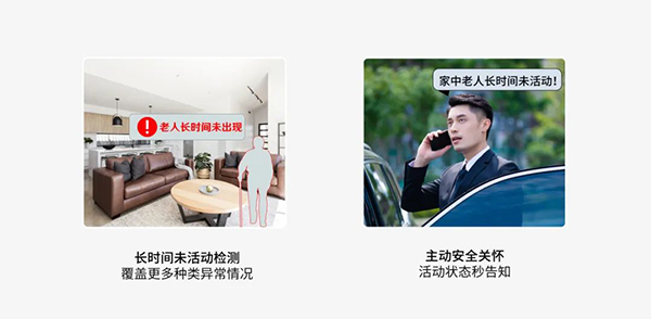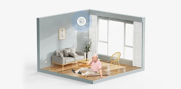 同时,探测器还可安装在客厅、厨房等活动频繁的区域或者有跌倒隐患的区域,加强对老人的看护。