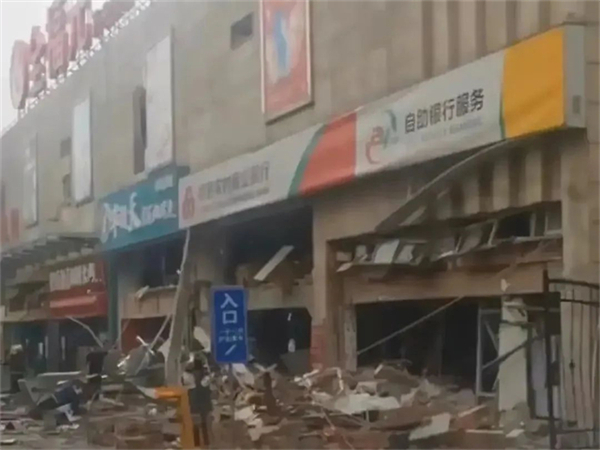 网友发布的视频显示,一条街边有门面发生了爆炸,相邻的一家银行和一家烤鱼店损毁严重,两层楼的玻璃和外墙已不见,地面一片狼藉。门口的马路上也受到了影响,有人员受伤倒地,也有车辆损坏。
