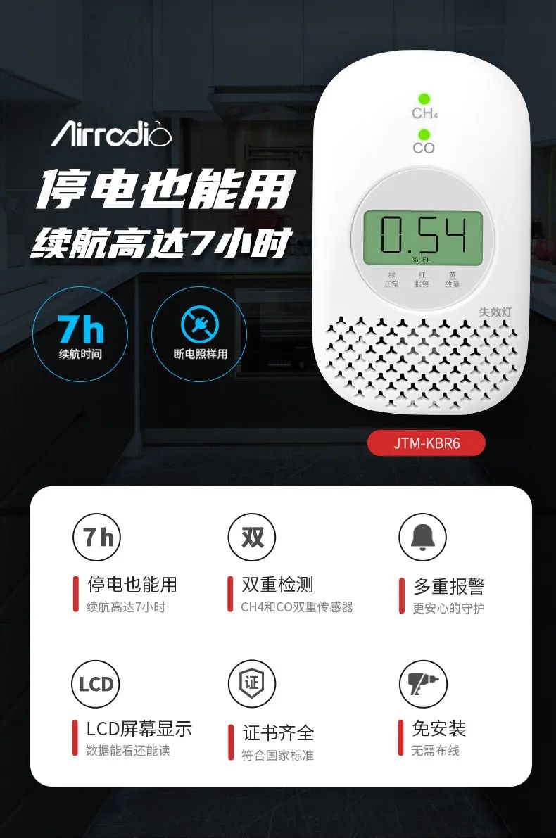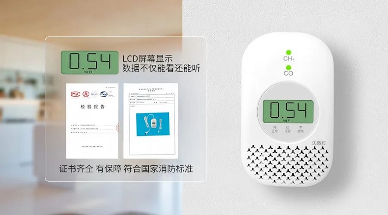 家用燃气报警器可24小时不间断检测燃气泄漏浓度,安全可靠。